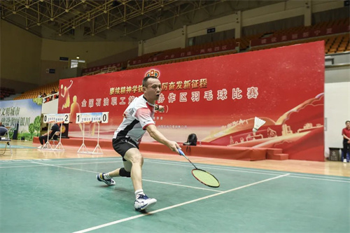 作為賽事承辦單位,寧夏石化公司副總經理高耀廷在開幕式上致歡迎辭。他代表公司黨委對廣大羽毛球愛好者的到來表示熱烈歡迎,并預祝比賽圓滿成功!他表示,舉辦本次比賽,是積極響應習近平總書記廣泛開展全民健身、建設體育強國的要求,是推動全民健身與全民健康深度融合的具體舉措,也是豐富員工業余文化生活、增強廣大員工集體主義精神和奮斗拼搏精神的有力行動。他希望全體運動員帶著“團結協作,頑強拼搏,勇于開拓,永爭第一”的體育精神,更好的投入到推動企業高質量發展的實踐中去。