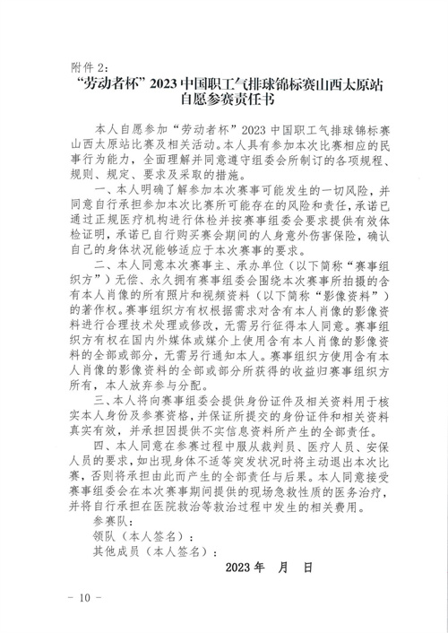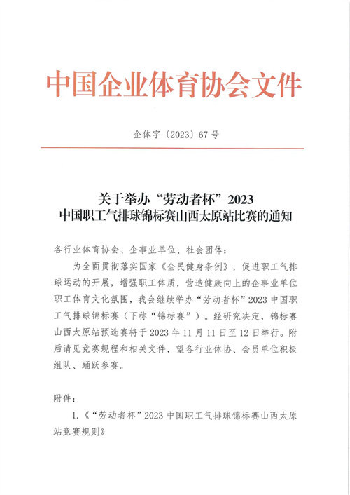 1、關于舉辦“勞動者杯”2023中國職工氣排球錦標賽山西太原站比賽的通知