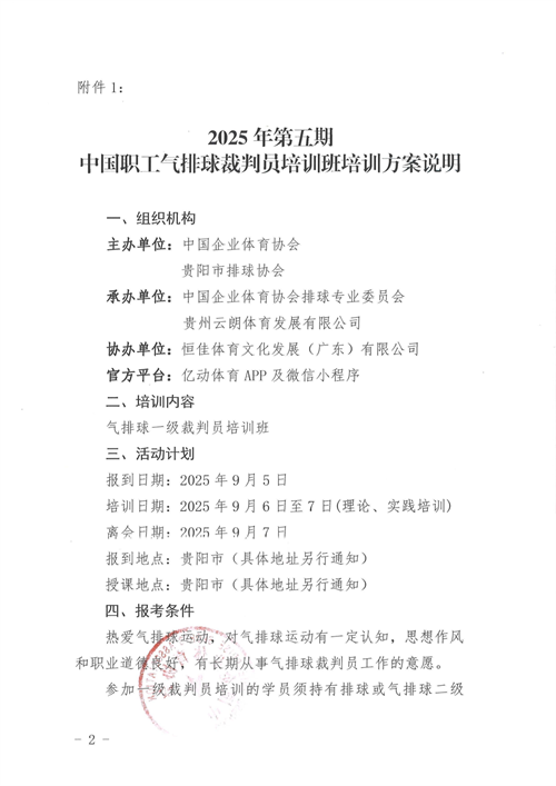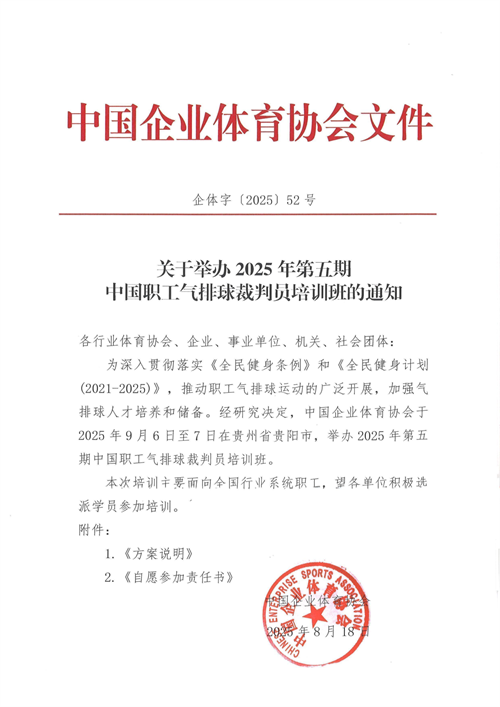 關(guān)于舉辦2025年第五期中國職工氣排球裁判員培訓(xùn)班的通知