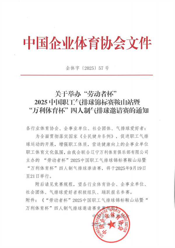 關于舉辦“勞動者杯”2025中國職工氣排球錦標賽鞍山站暨“萬利體育杯”四人制氣排球邀請賽的通知