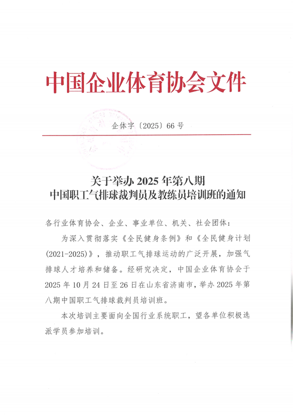 關于舉辦2025年第八期中國職工氣排球裁判員及教練員培訓班的通知