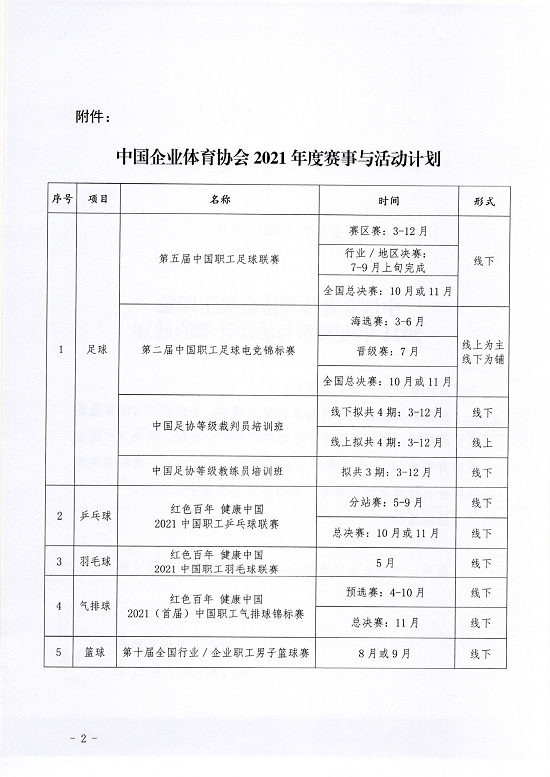 附件:中國(guó)企業(yè)體育協(xié)會(huì)2021年度賽事與活動(dòng)計(jì)劃