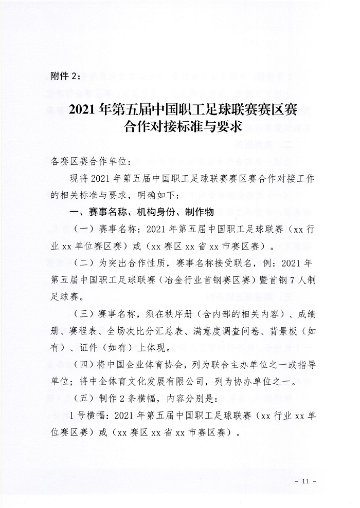 2.《2021年第五屆中國職工足球聯賽賽區賽合作對接標準與要求》
