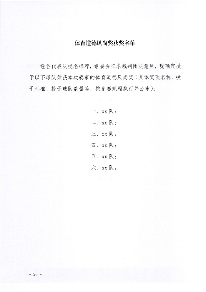 (四)充分做好賽前疫情防控準備工作。各賽區賽組織單位須嚴格按照國家和地方疫情防控部門、疾控部門、體育部門頒布的各項規定與指導意見,加強對辦賽風險形勢的研判,在此基礎上,科學制定匹配本賽事具體情況的組織方案,精準控制人員規模,做實做細各項聯防聯控方案和疫情防控措施,完善賽事服務保障工作,確保達到防控安全管理和應急處置要求。