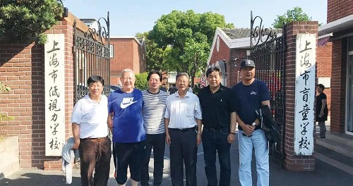 2018年,遲尚斌(右2)與一批中國足球專家走進上海市盲童學校
