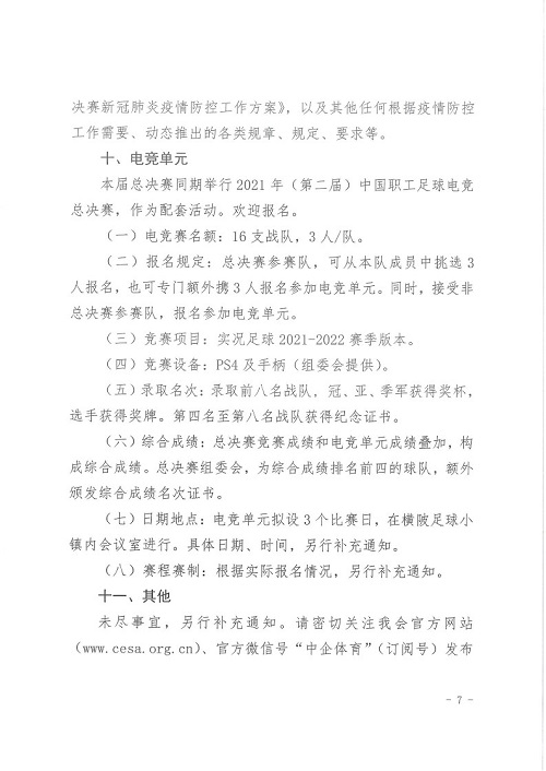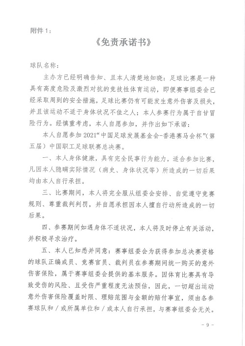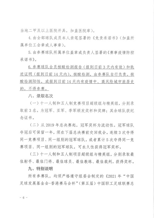 關(guān)于舉辦2021“中國足球發(fā)展基金會-香港賽馬會杯”(第五屆)中國職工足球聯(lián)賽總決賽的通知