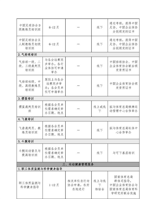 足球/籃球/電子定向/電競/職工體質監測與科學健身指導/心意服務/健康中國企業行動體育專項行動業務事項,定向咨詢請聯系: