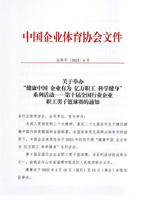 關于舉辦“健康中國 企業有為 億萬職工 科學健身”系列活動——第十屆全國行業企業職工男子籃球賽的通知