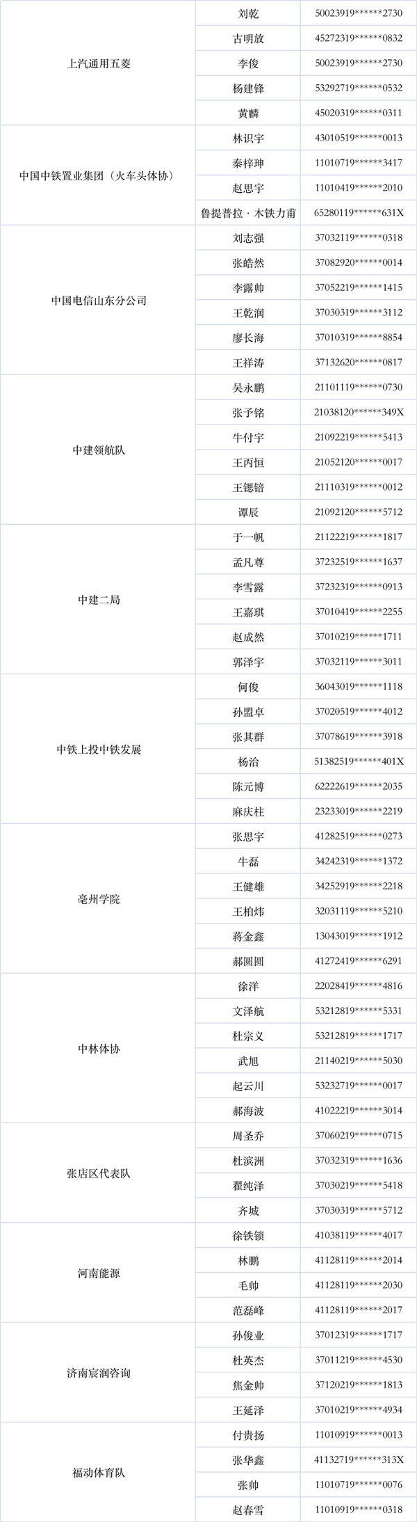 第十屆全國行業(yè)企業(yè)職工男子籃球賽參賽隊員名單公示