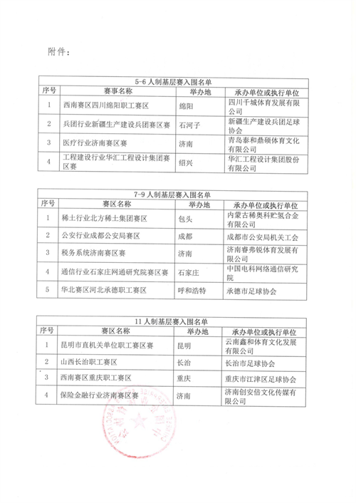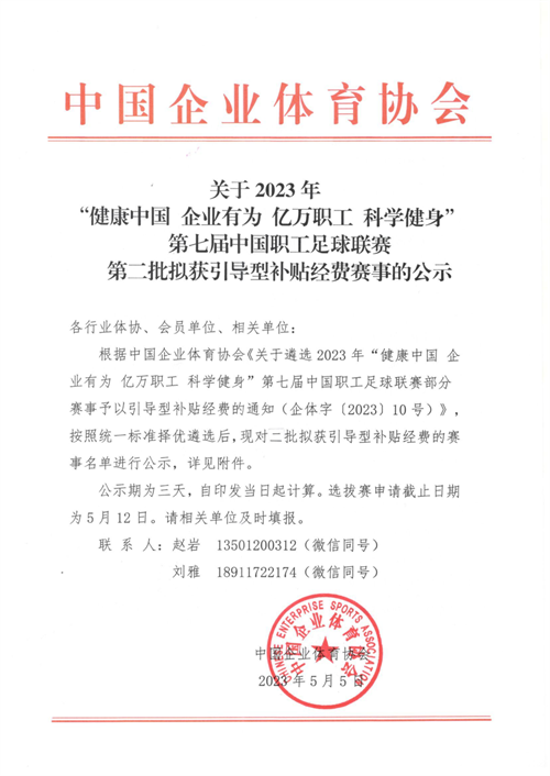 關于2023年第七屆中國職工足球聯賽第二批擬獲引導型補貼經費賽事的公示