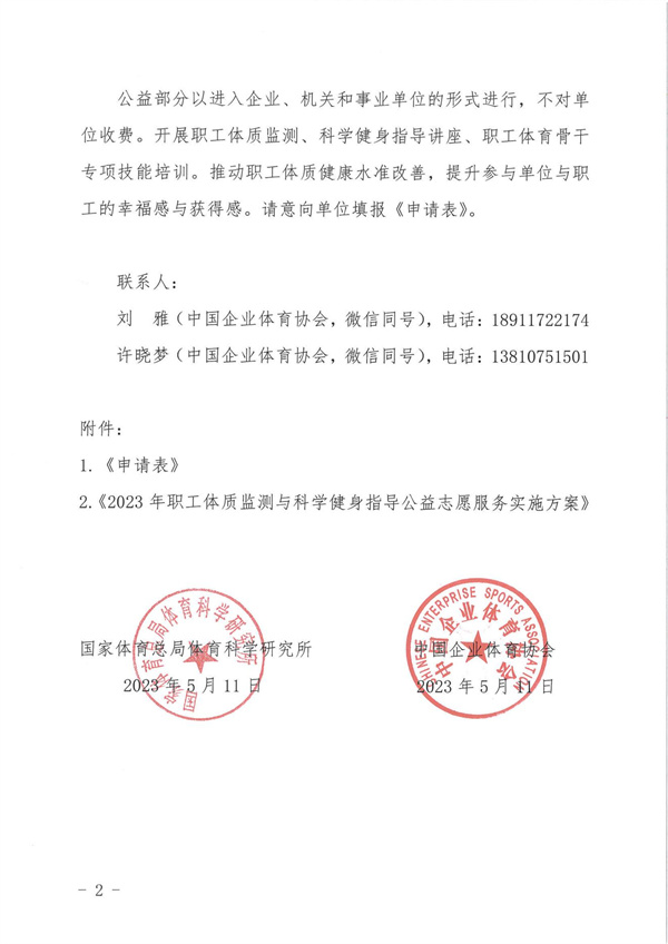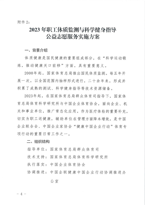 關于進入企業、機關和事業單位開展2023年職工體質監測與科學健身指導公益志愿服務的通知