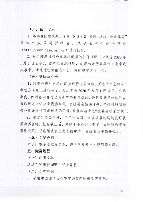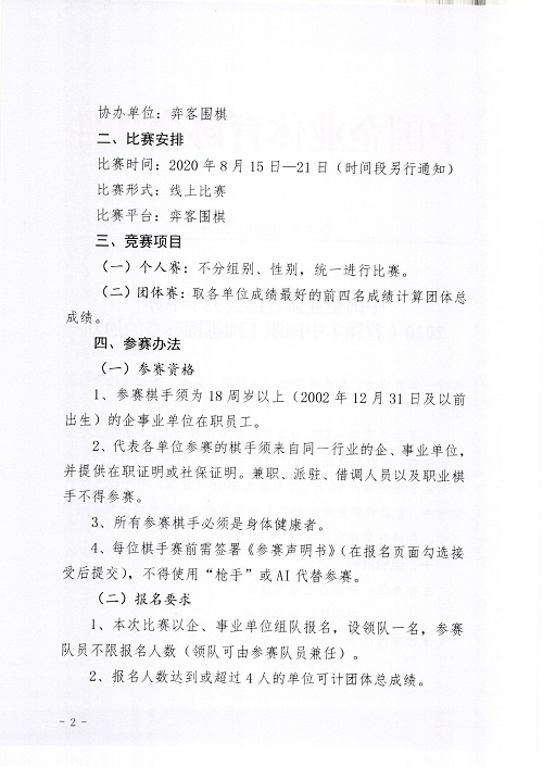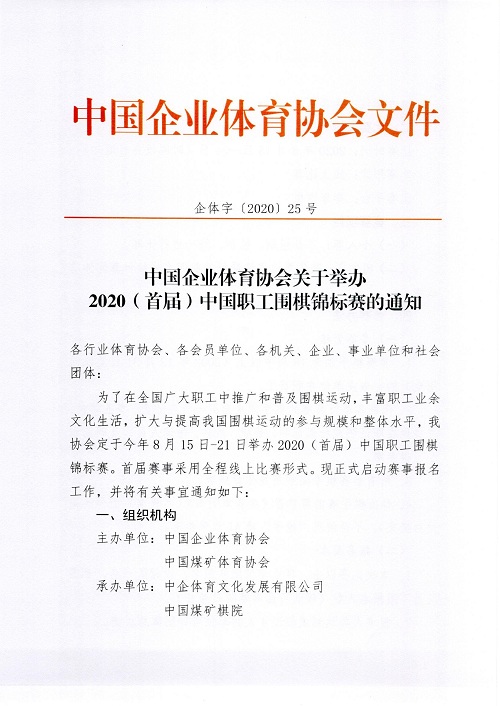 中國(guó)企業(yè)體育協(xié)會(huì)關(guān)于舉辦全國(guó)職工健康促進(jìn)工程·健康運(yùn)動(dòng) 2020(首屆)中國(guó)職工圍棋錦標(biāo)賽的通知