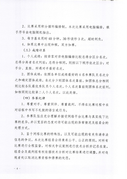 3、所有參賽棋手必須是身體健康者。