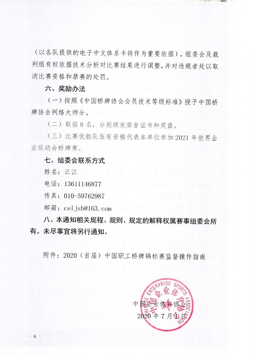 附:2020年(首屆)職工橋牌錦標賽的通知