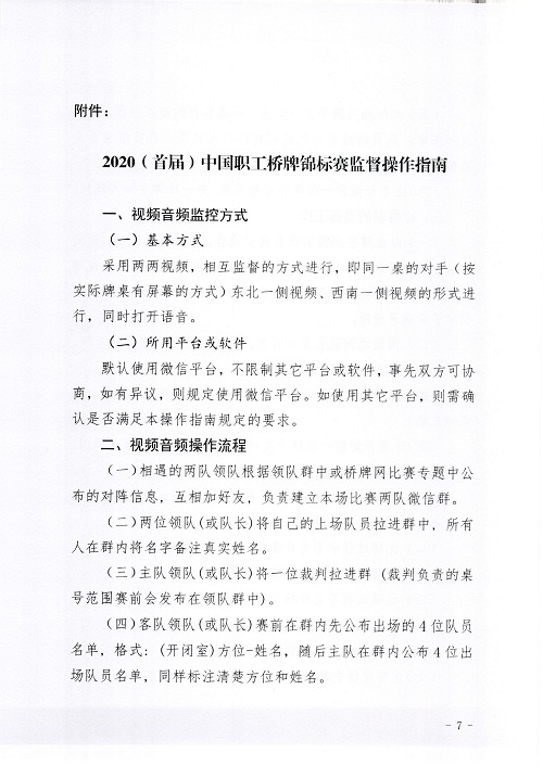 附件:全國職工健康促進工程?健康運動 2020中國職工橋牌錦標賽監督操作指南