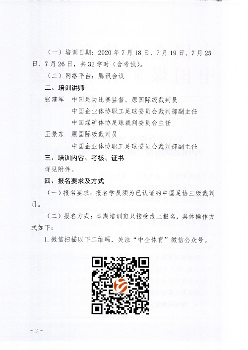 附:關于聯合舉辦2020年首期線上中國足球協會二級裁判員培訓班的通知