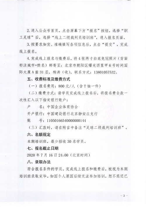 (三)匯款時,請在附言中備注“足球二級裁判培訓班”。