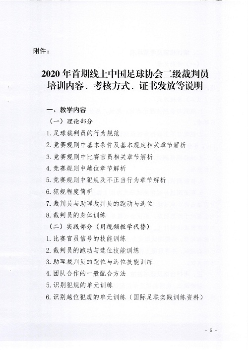 附件:《2020年首期線上中國足球協會二級裁判員培訓內容、考核方式、證書發放等說明》