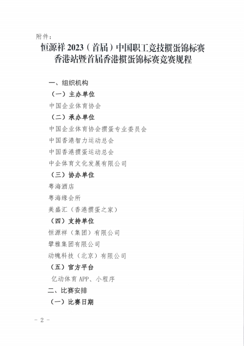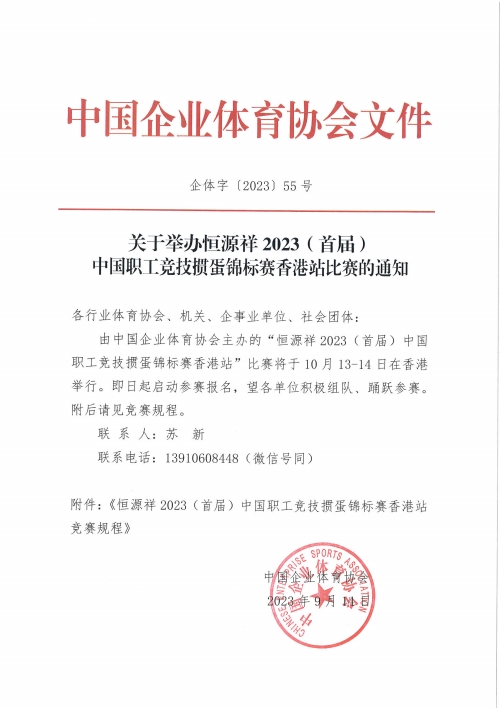 關(guān)于舉辦2023(首屆)中國職工競技慣蛋錦標(biāo)賽香港站比賽的通知