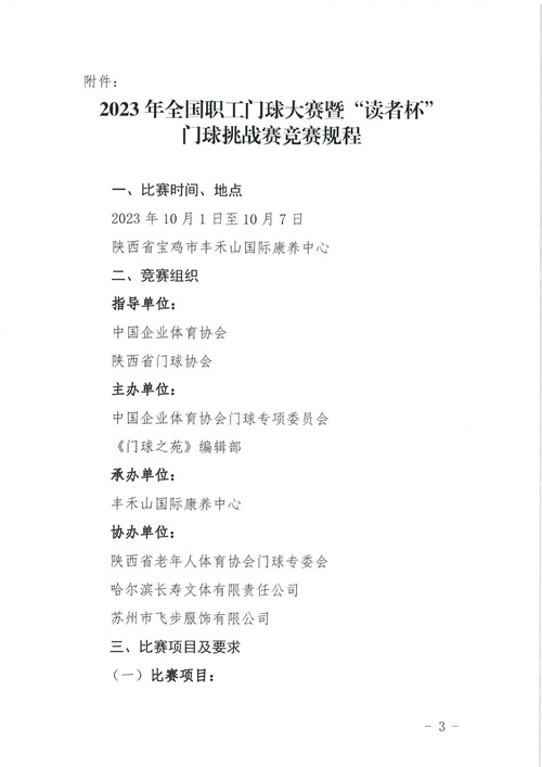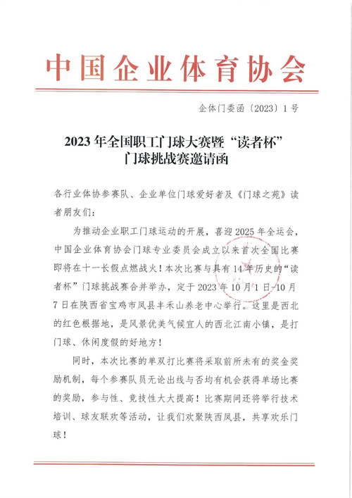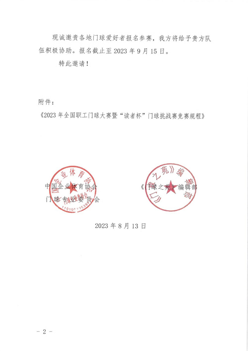 2023全國職工門球大賽暨“讀者杯”門球挑戰賽邀請函
