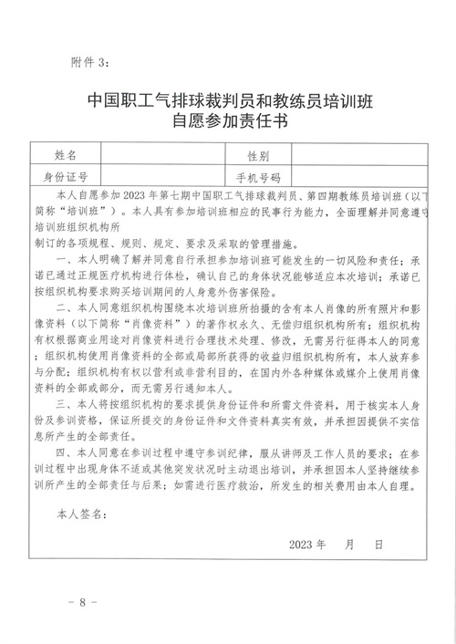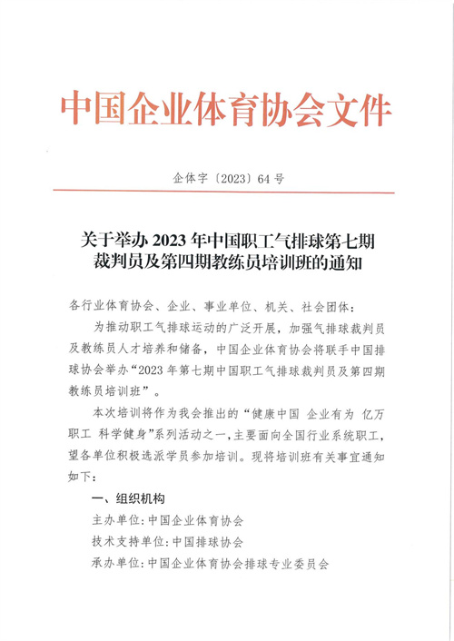 關于舉辦2023年中國職工第七期氣排球裁判員及第四期教練員培訓班的通知