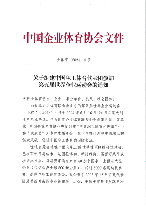 關(guān)于組建中國職工體育代表團(tuán)參加第五屆世界企業(yè)運(yùn)動(dòng)會(huì)的通知