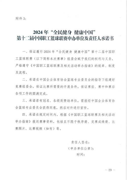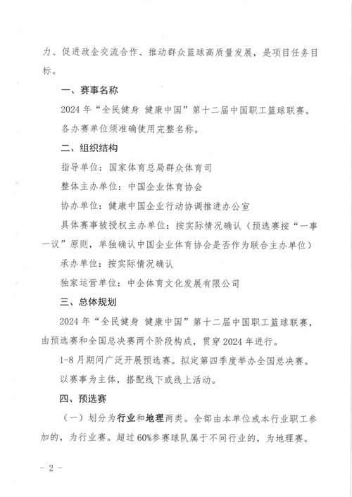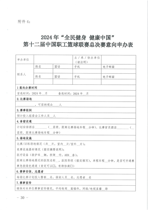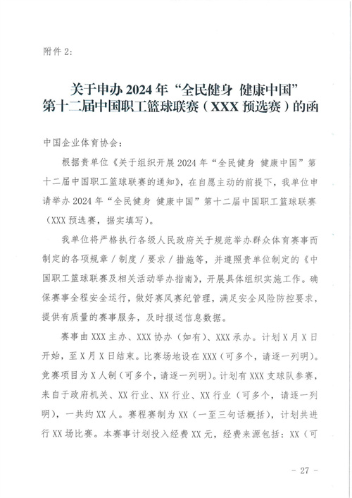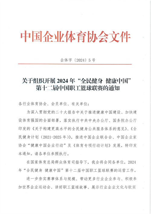 關于組織開展2024年"全民健身 健康中國"第十二屆中國職工籃球聯賽的通知