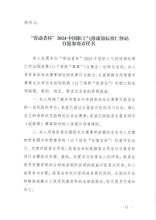 關(guān)于舉辦“勞動(dòng)者杯”2024中國(guó)職工氣排球錦標(biāo)賽仁懷站比賽的通知