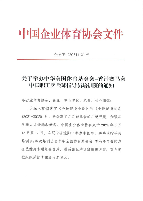 關(guān)于舉辦中華全國體育基金會-香港賽馬會 中國職工乒乓球指導(dǎo)員培訓(xùn)班的通知