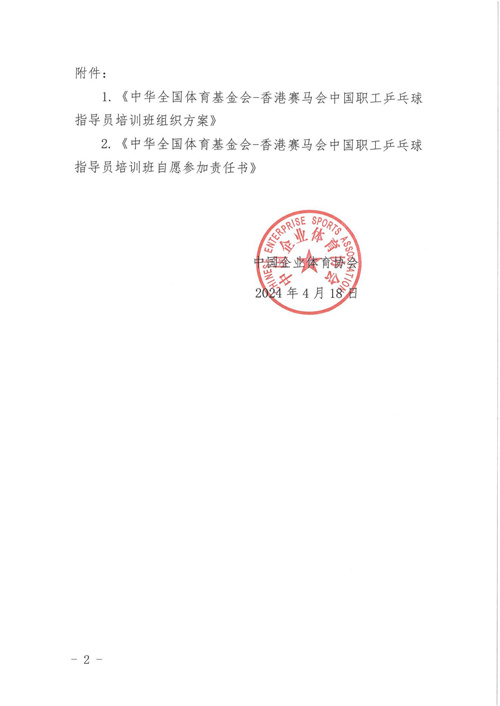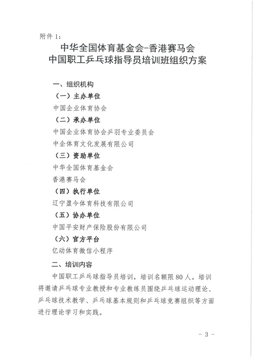 通知文件、附件1:中華全國體育基金會-香港賽馬會中國職工乒乓球指導(dǎo)員培訓(xùn)班組織方案