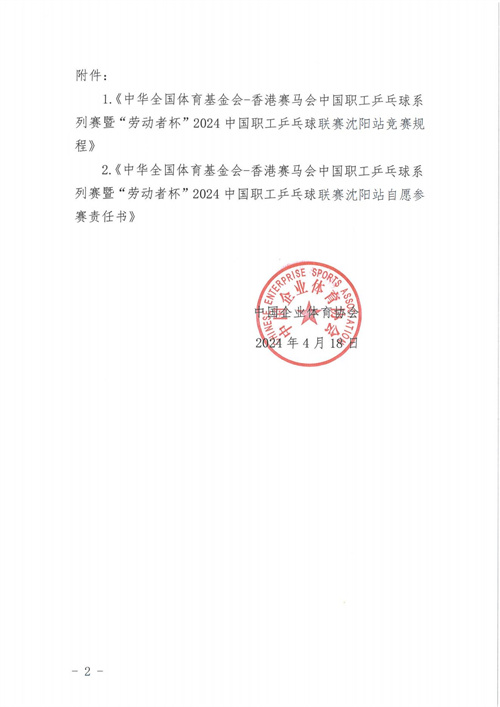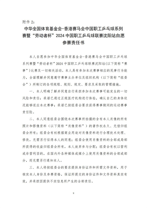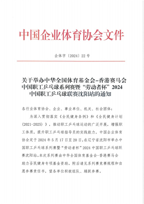 關于舉辦中華全國體育基金會-香港賽馬會中國職工乒乓球系列賽暨“勞動者杯”2024中國職工乒乓球聯賽沈陽站的通知