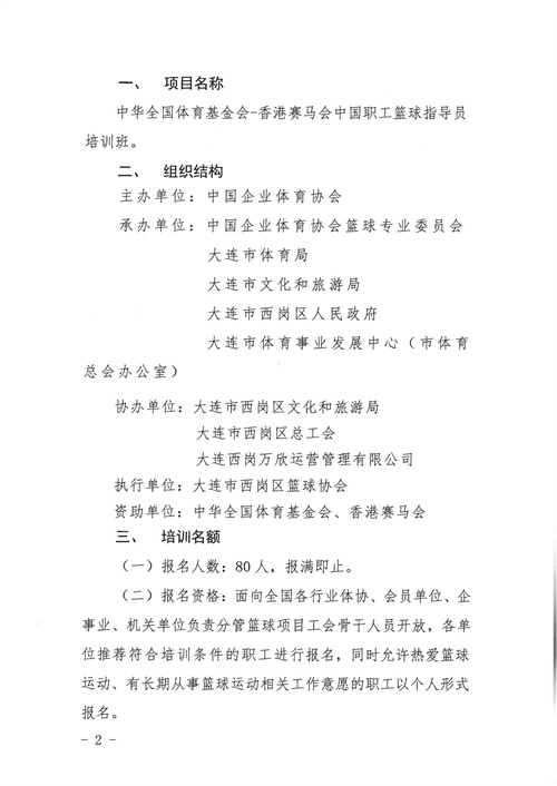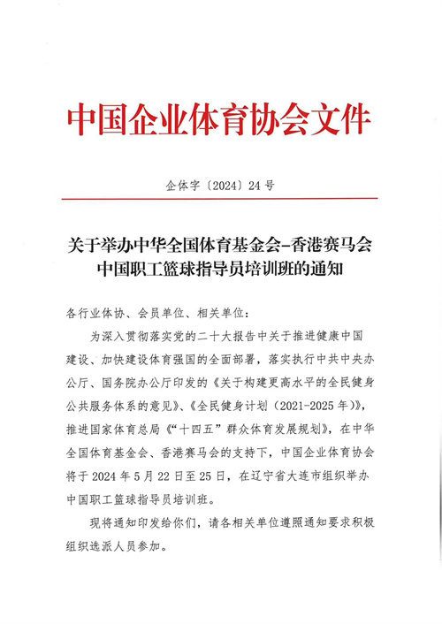 關于舉辦中華全國體育基金會-香港賽馬會中國職工籃球指導員培訓班的通知