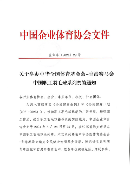 關(guān)于舉辦中華全國體育基金會-香港賽馬會中國職工羽毛球系列賽的通知