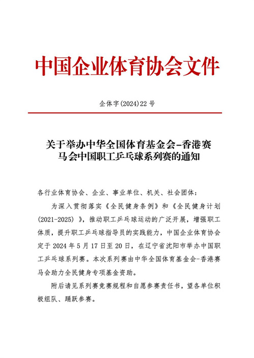 關于舉辦中華全國體育基金會-香港賽馬會中國職工乒乓球系列賽的通知