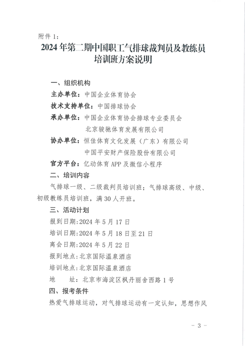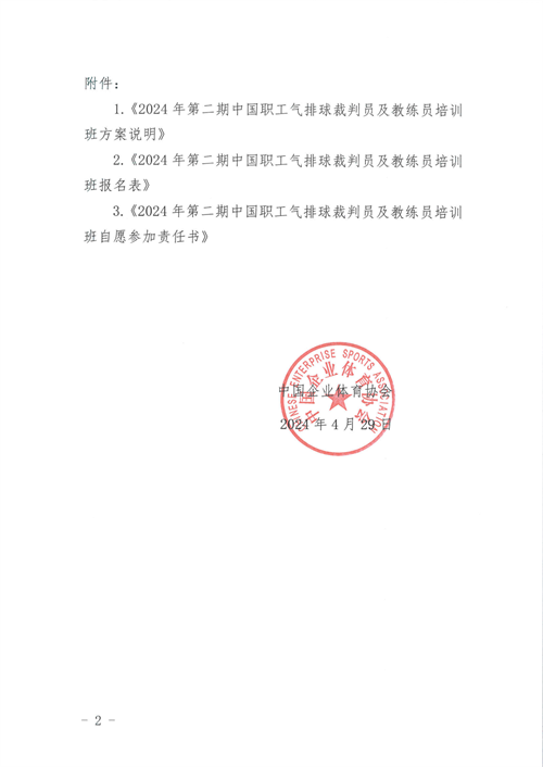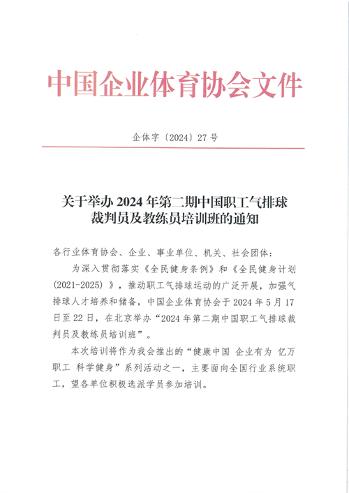 關(guān)于舉辦2024年第二期中國(guó)職工氣排球裁判員及教練員培訓(xùn)班的通知