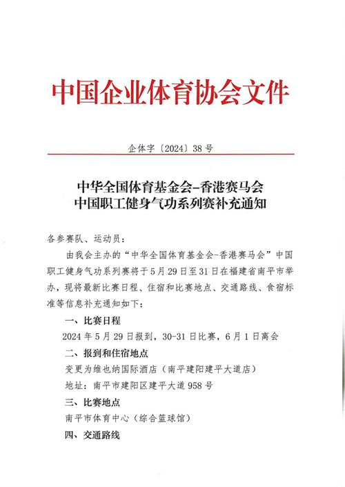 中華全國體育基金會 – 香港賽馬會中國職工健身氣功系列賽補充通知