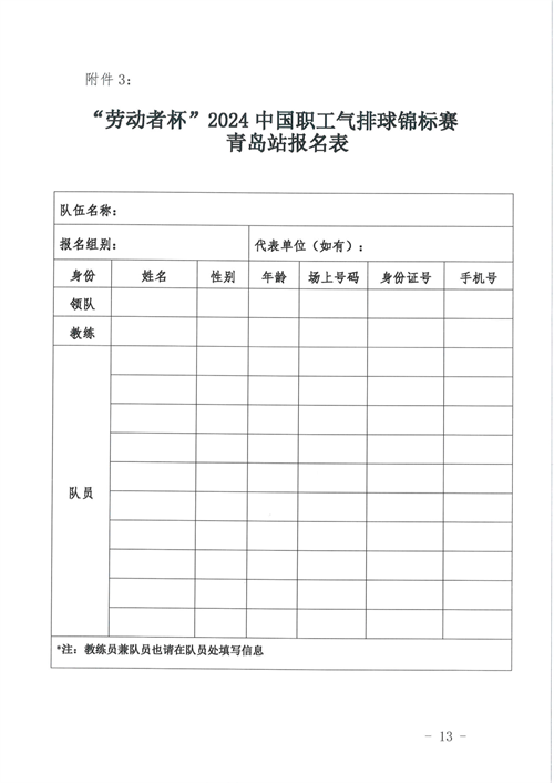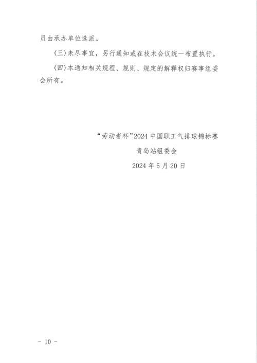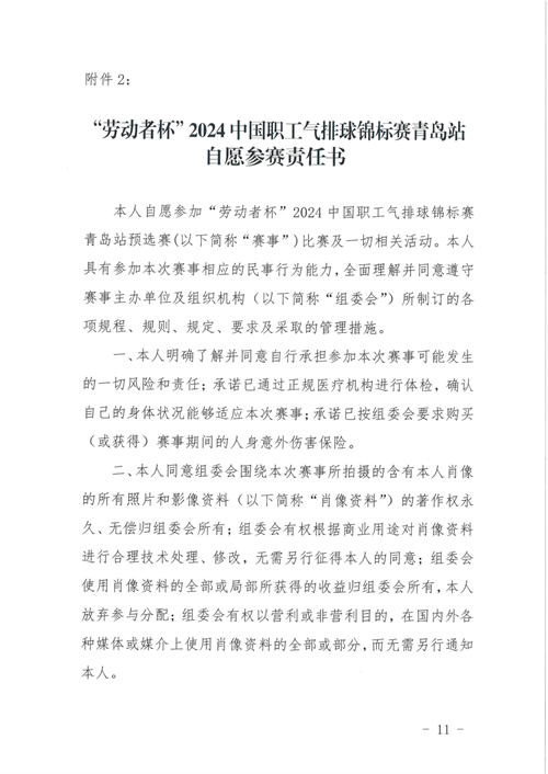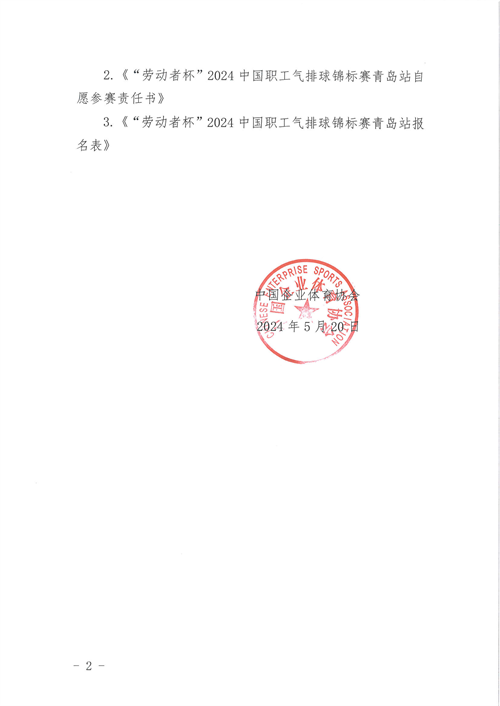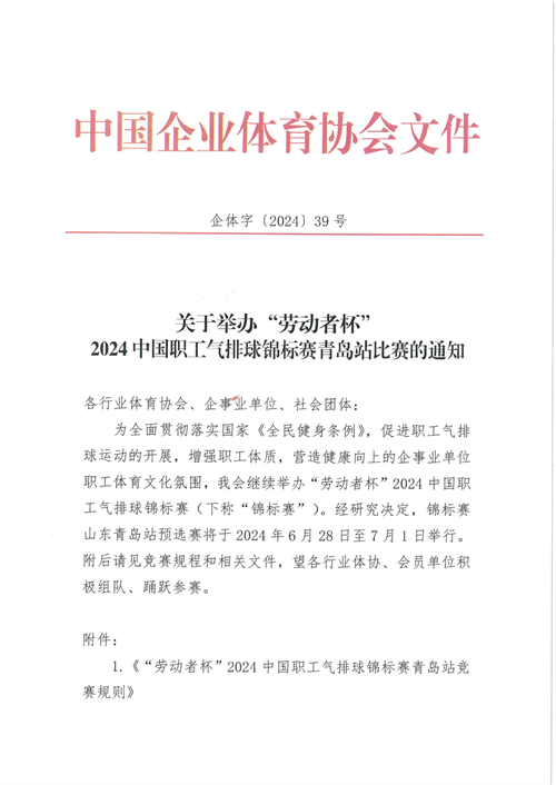 關于舉辦“勞動者杯”2024中國職工氣排球錦標賽青島站比賽的通知