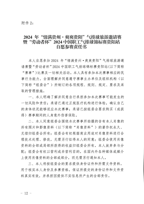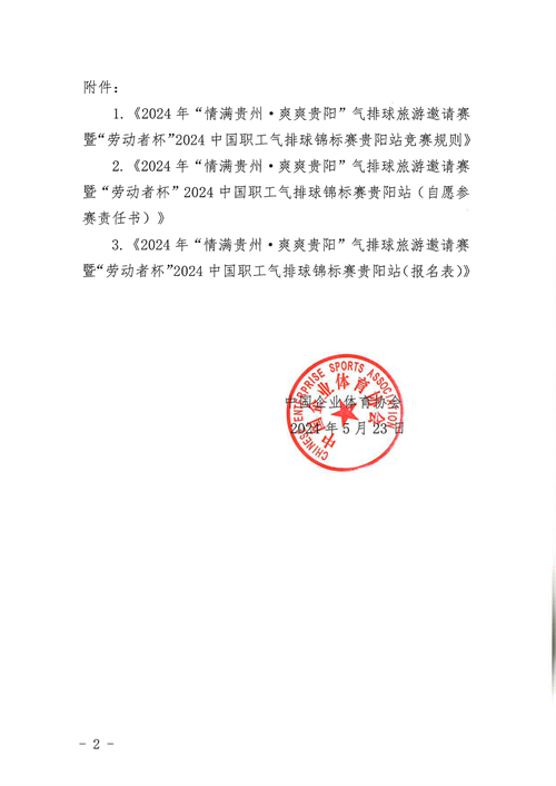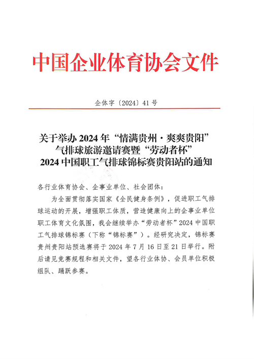 關于舉辦2024年“情滿貴州· 爽爽貴陽”氣排球旅游邀請賽暨“勞動者杯”2024中國職工氣排球錦標賽貴陽站的通知