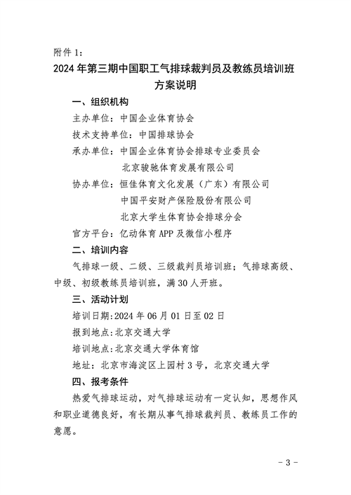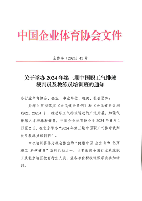 關于舉辦2024年第三期中國職工氣排球裁判員及教練員培訓班的通知