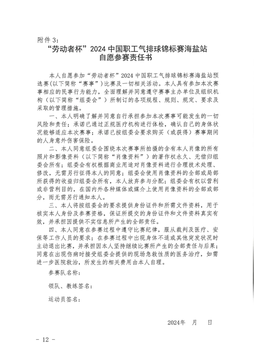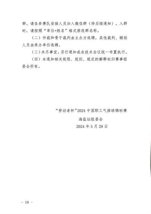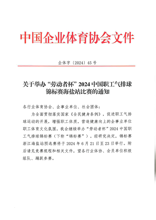 關于舉辦“ 勞動者杯” 2024中國職工氣排球錦標賽海鹽站比賽的通知