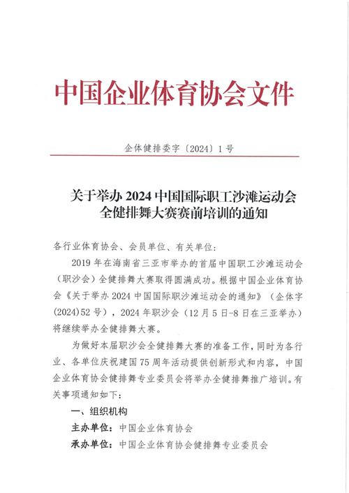 關(guān)于舉辦2024中國國際職工沙灘運(yùn)動(dòng)會(huì)全健排舞大賽賽前培訓(xùn)的通知