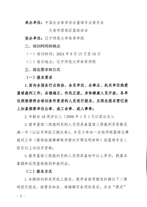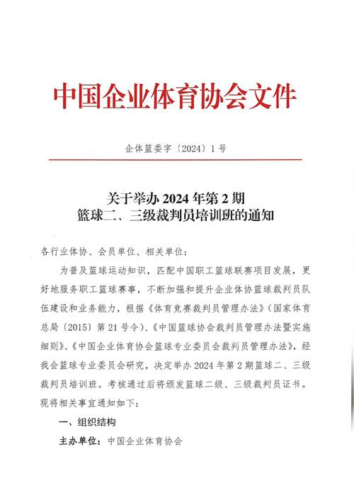 關于舉辦2024年第2期籃球二、三級裁判員培訓班的通知