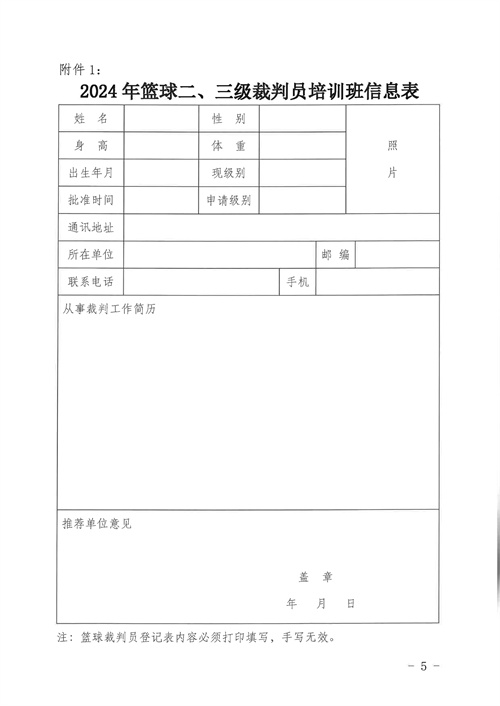 附件1 2024年籃球二、三級裁判員培訓班信息表
