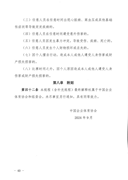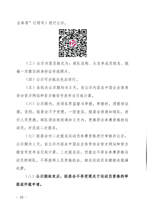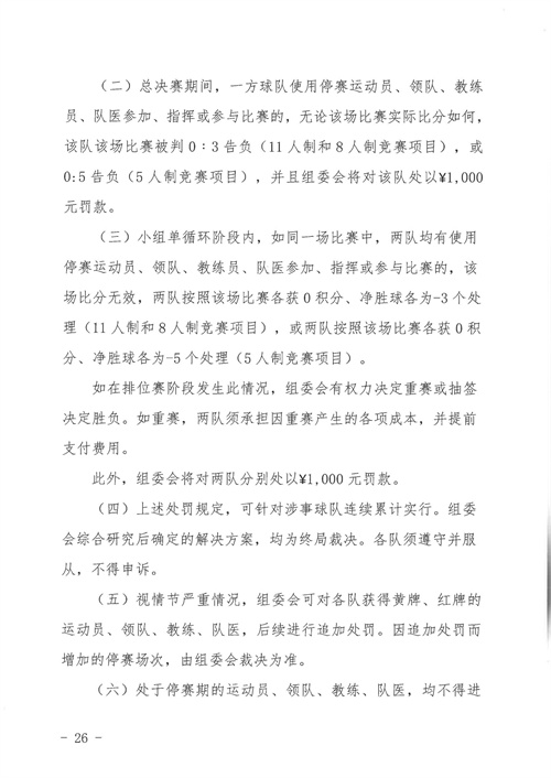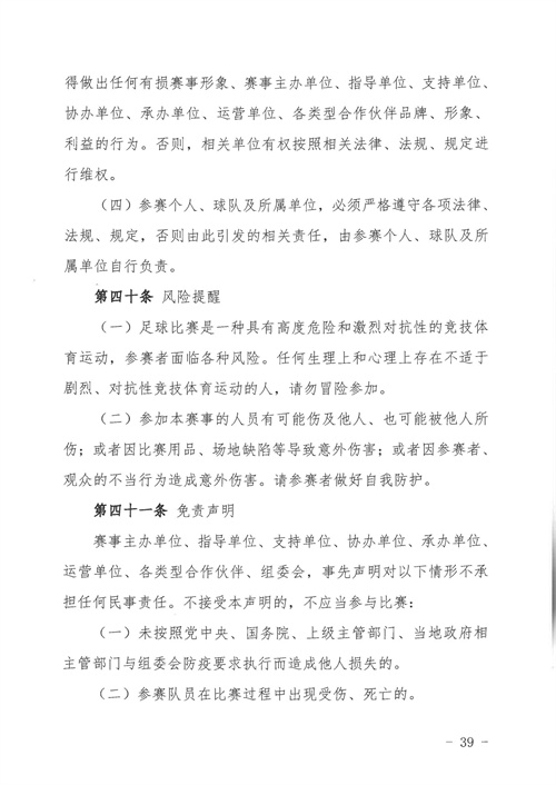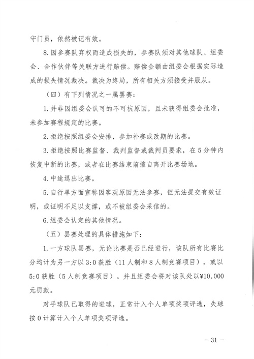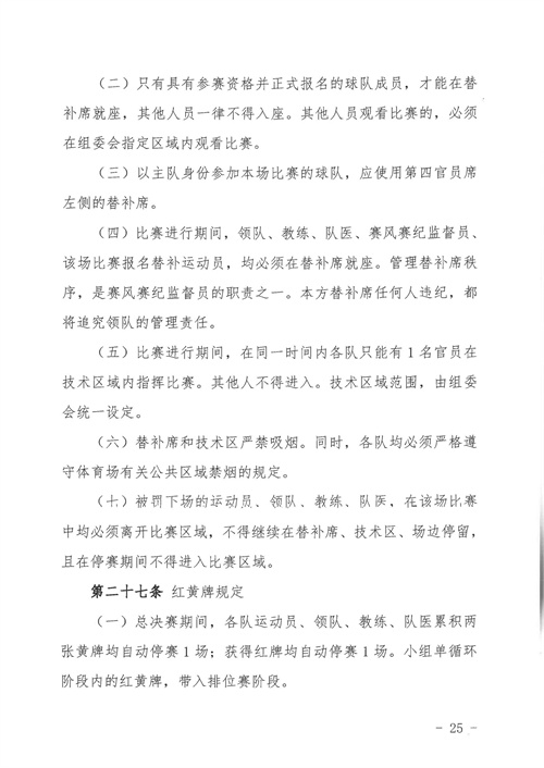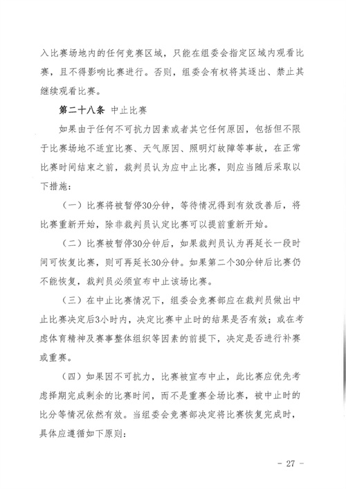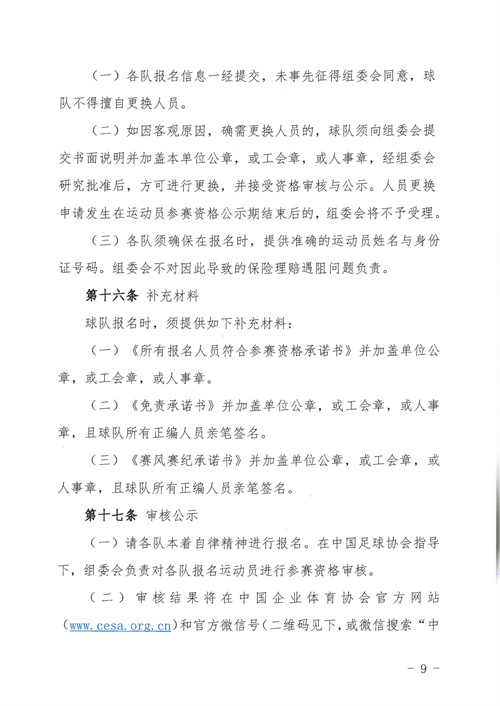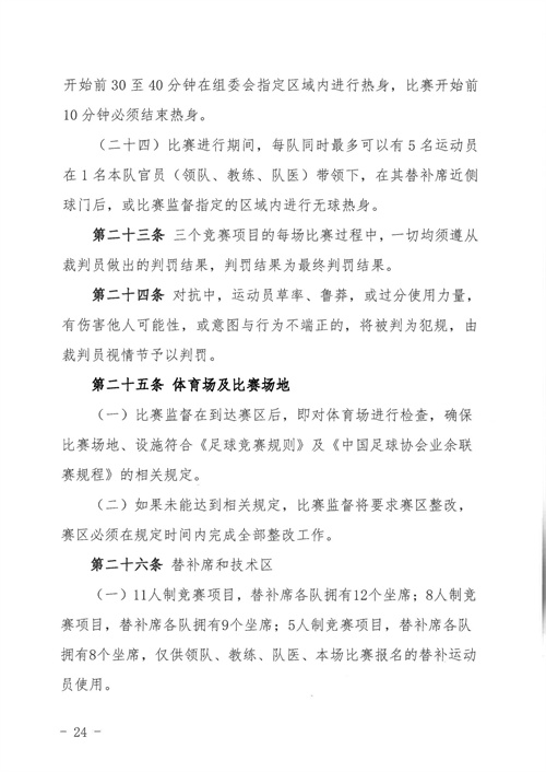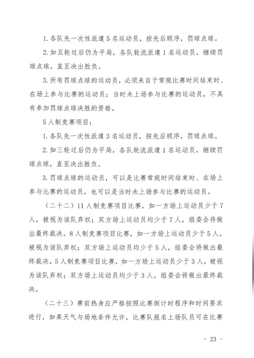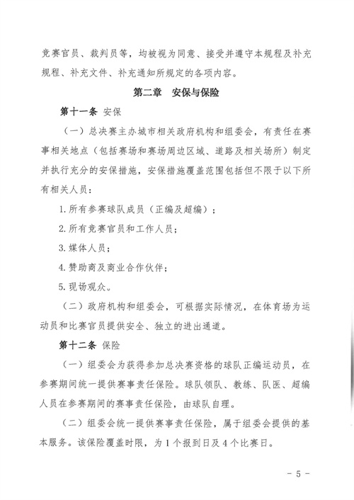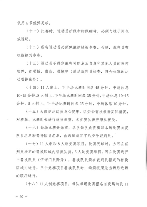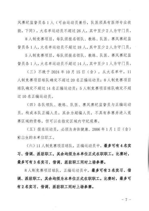 各參賽單位及球隊:“全民健身 健康中國”2024年第八屆“中國足球發(fā)展基金會-香港賽馬會杯”中國職工足球聯(lián)賽全國總決賽(以下簡稱“賽事”)定于2024年11月6日(報到)至11日(離會)在云南省玉溪市高原足球訓練基地舉行。為了更好的、從容不迫的進行賽事籌備組織工作,現(xiàn)將賽事規(guī)程印發(fā)給你們。請務必提前認真閱讀,準確掌握具體內容,并嚴格遵守和執(zhí)行。聯(lián)系人:趙巖(中國企業(yè)體育協(xié)會足球專業(yè)委員會常務副秘書長),電話:13501200312(微信同號)。