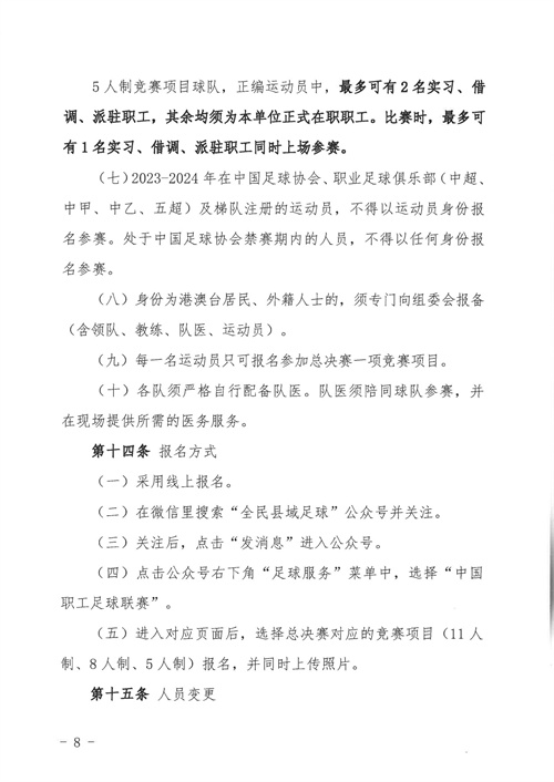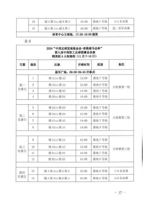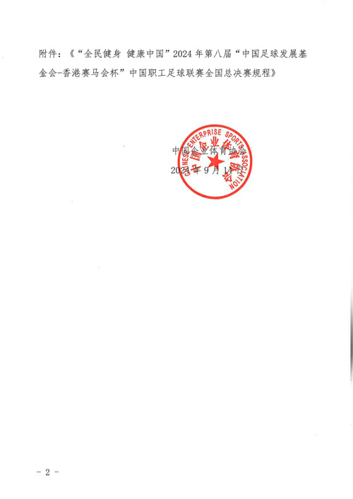 關于印發(fā)《“全民健身 健康中國”2024年第八屆“中國足球發(fā)展基金會-香港賽馬會杯”中國職工足球聯(lián)賽全國總決賽規(guī)程》的通知
