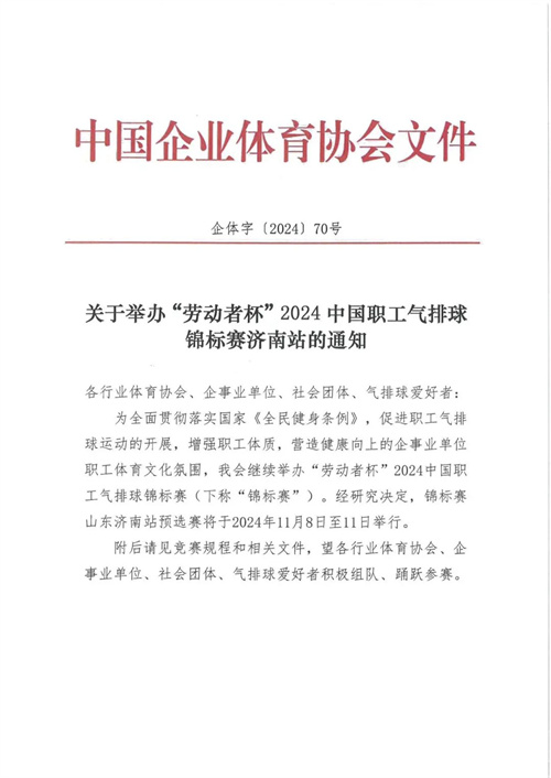 關(guān)于舉辦“勞動者杯”2024中國職工氣排球錦標(biāo)賽濟(jì)南站的通知