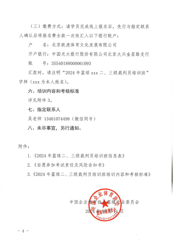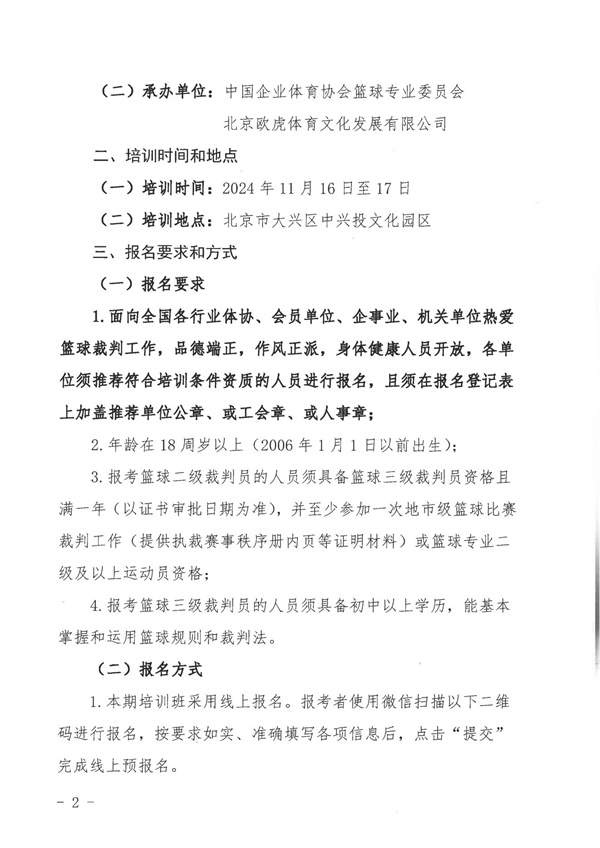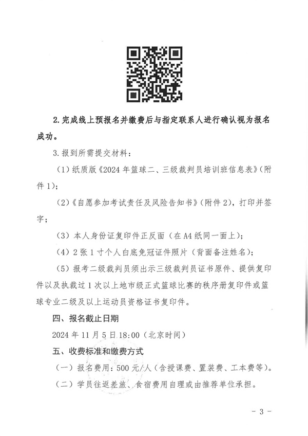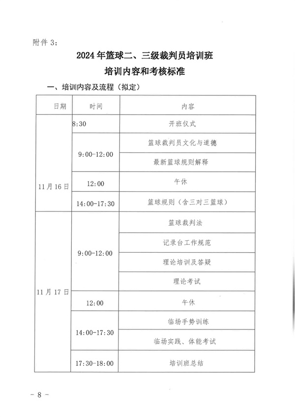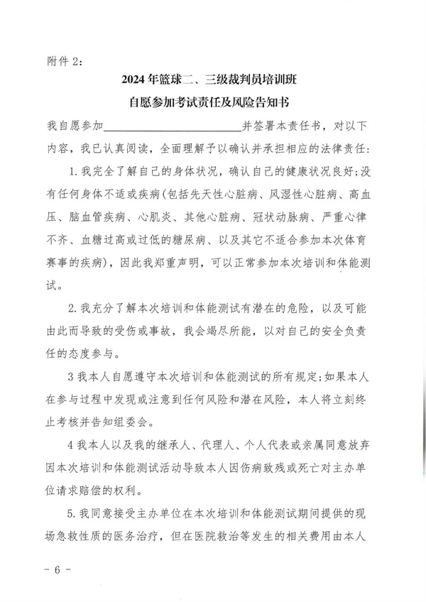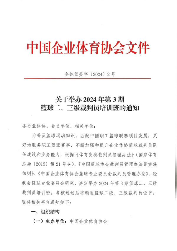 1、企體籃委字〔2024〕2號關(guān)于舉辦2024年第3期籃球二、三級裁判員培訓班的通知