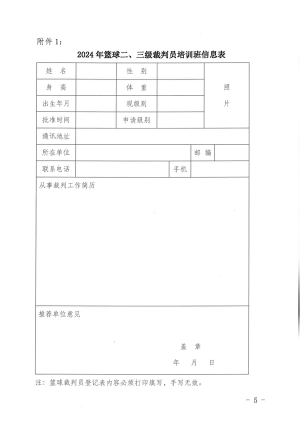 2、附件1 2024年籃球二、三級裁判員培訓班信息表