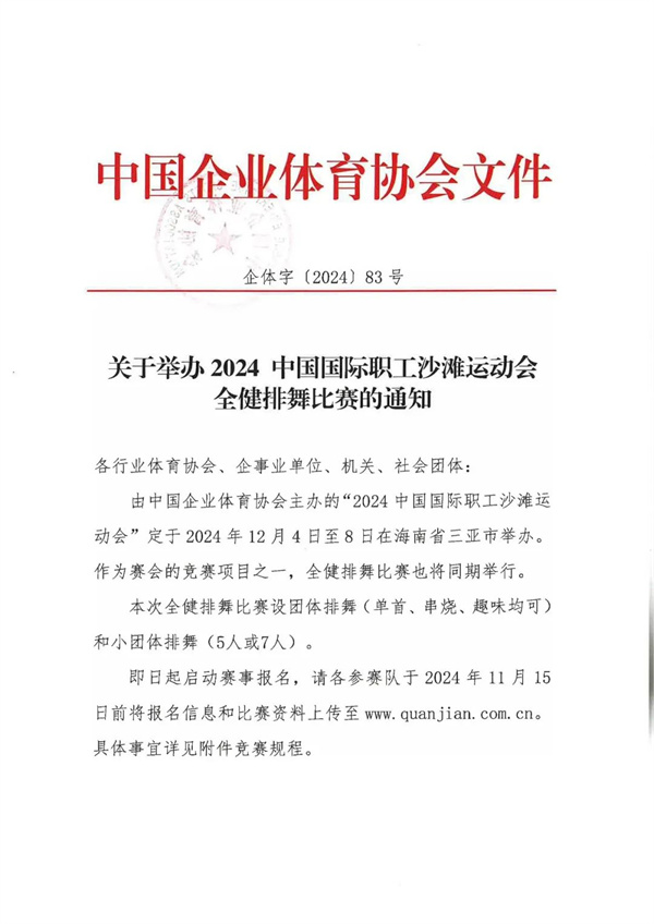 關于舉辦2024中國職工沙灘運動會全健排舞比賽的通知