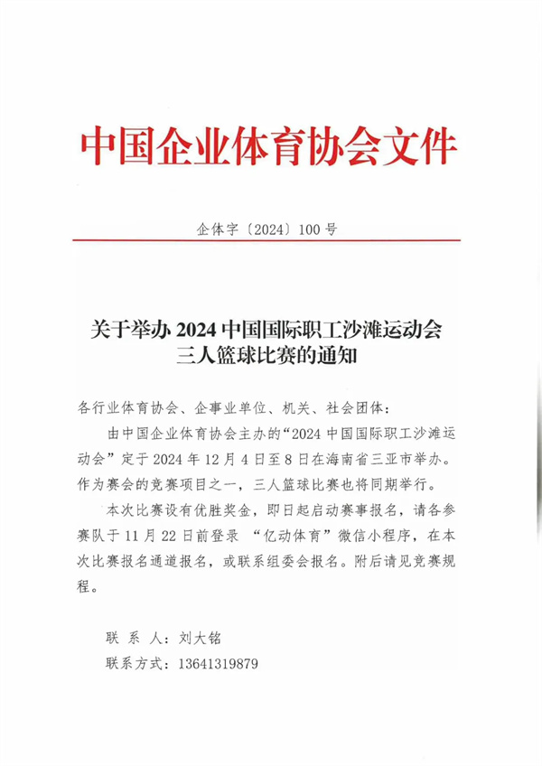 關(guān)于舉辦2024中國國際職工沙灘運(yùn)動會三人籃球比賽的通知